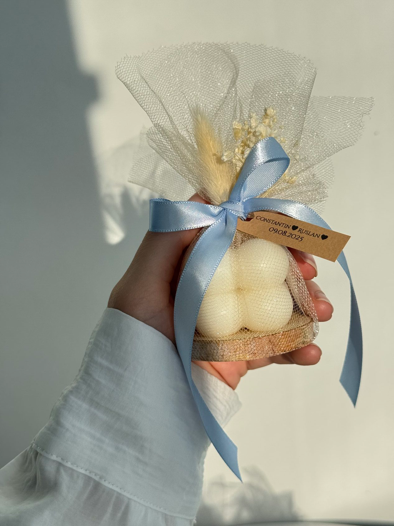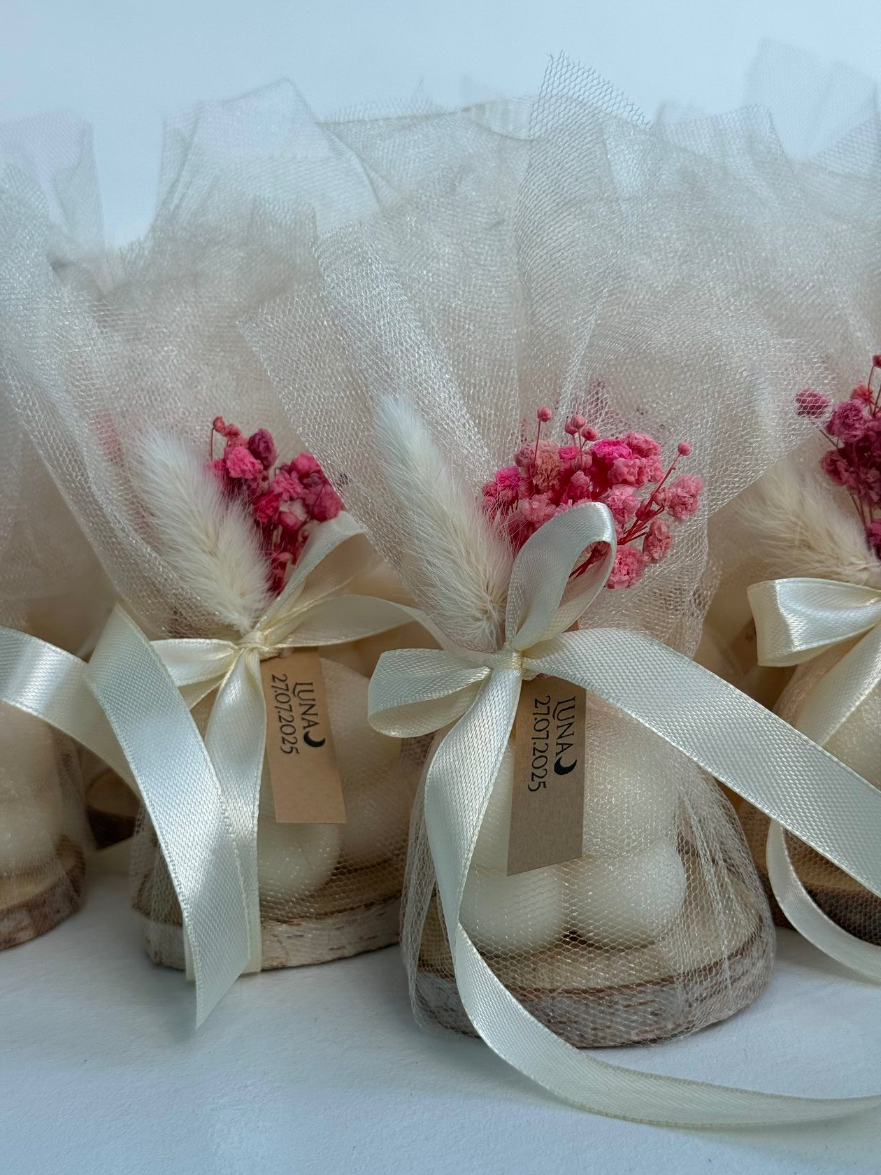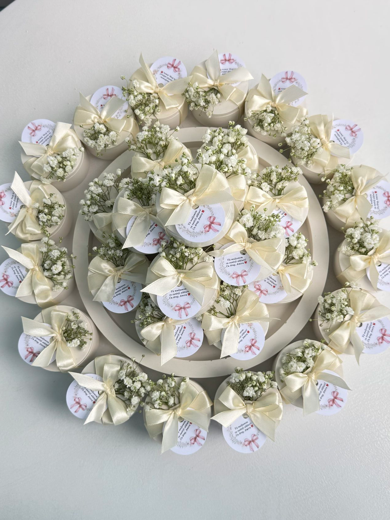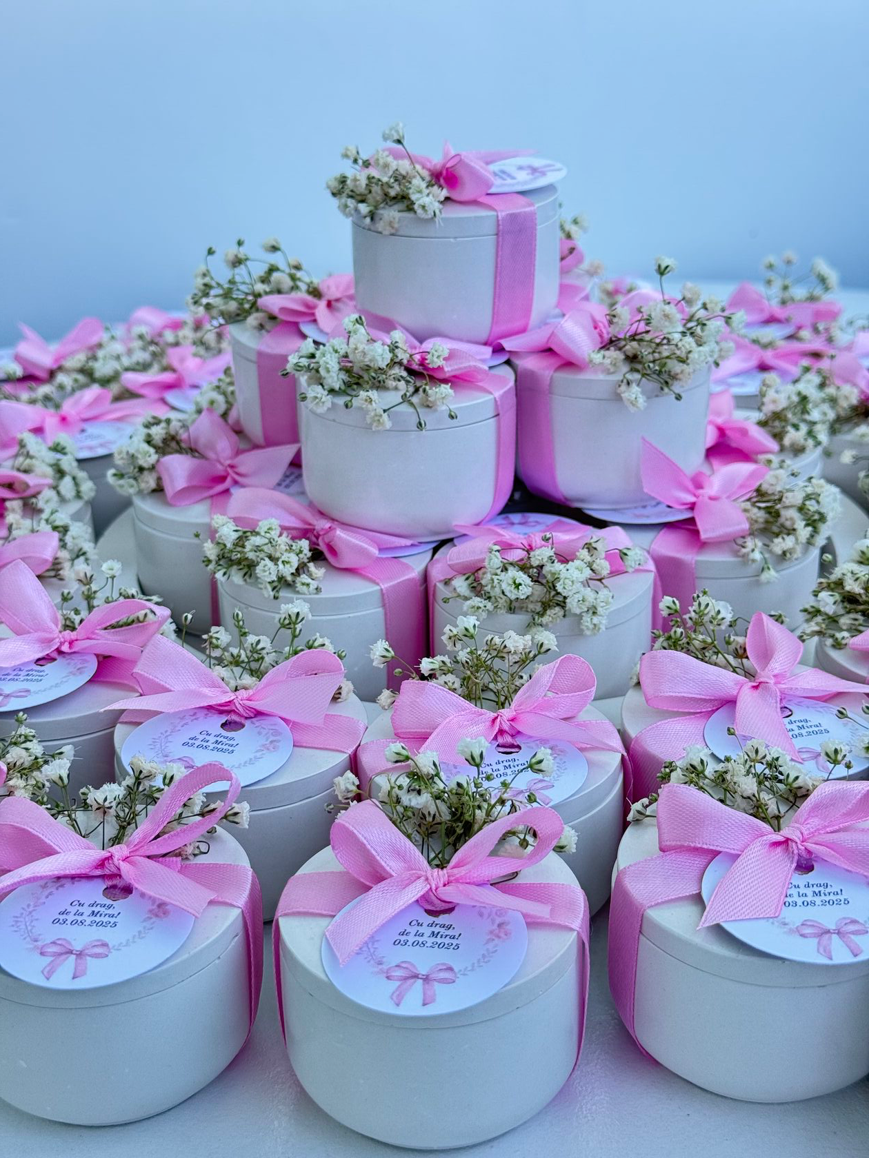 Decorul este inclus în preț. Florile pot fi uscate sau proaspete. Se recomandă de a face comandă preventiv cu 2-4 săptămâni sau chiar mai mult. Pentru mai multe detalii, ne scrieți pe Instagram @passion.candless sau ne contactați printr-un apel. De reținut este că mărturiile Passion sunt turnate manual, nu produse în masă, și conțin doar ceară naturală, este posibil să observi anumite imperfecțiuni. Nu îți fă griji, deși depunem toate eforturile pentru a asigura o calitate înaltă și consistență, fiecare plic de aromă handmade va fi puțin diferit.
